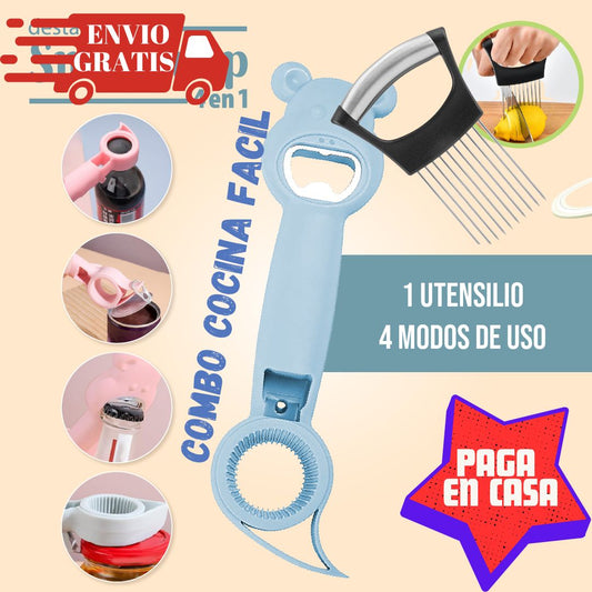 !COMBO! COCINA FACIL "Destapador 4 en 1, Soporte para rebanadas"