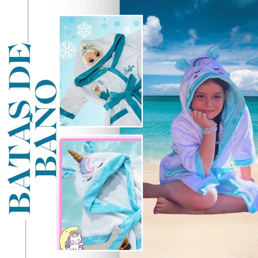 Imagina a tus hijos envueltos en suaves y coloridas salidas de baño que llevan su nombre o personaje favorito. 🛁👦👧